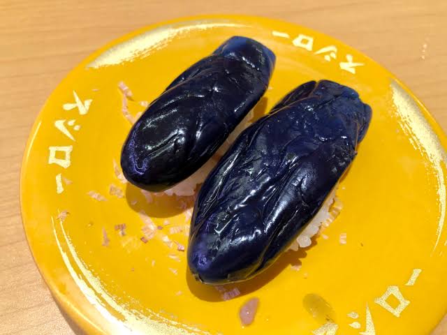 かっぱ寿司だとたまに揚げナスが出るけど、これまた美味い。
