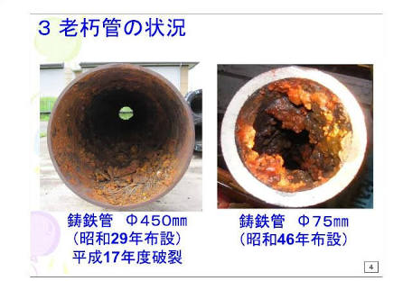 169の画像はおそらく工場内の工業用水とかで上水道管ではないね。まず錆びるとしたら外側だし