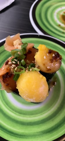 まあ値段高いのは置いておいて、ネタがどんなものなのか普通にマグロとかホタテの握りを見たかったな