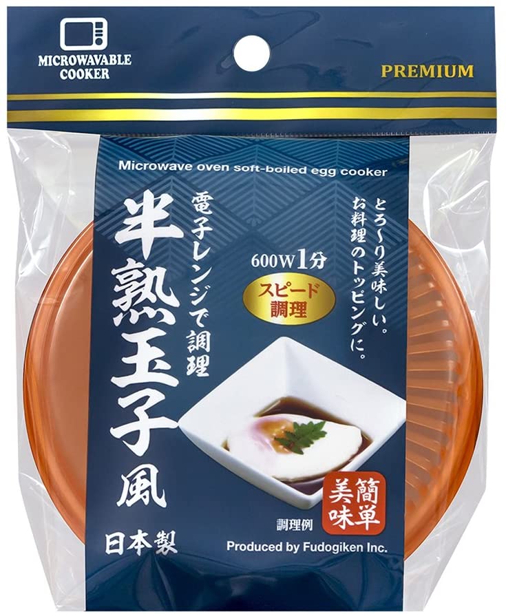 時間は自分で何度か試して調整したらなんとかなるよ。6分から7分。500ワットで。自分が使っているレンチングッズでは、そのくらいで半熟かな。