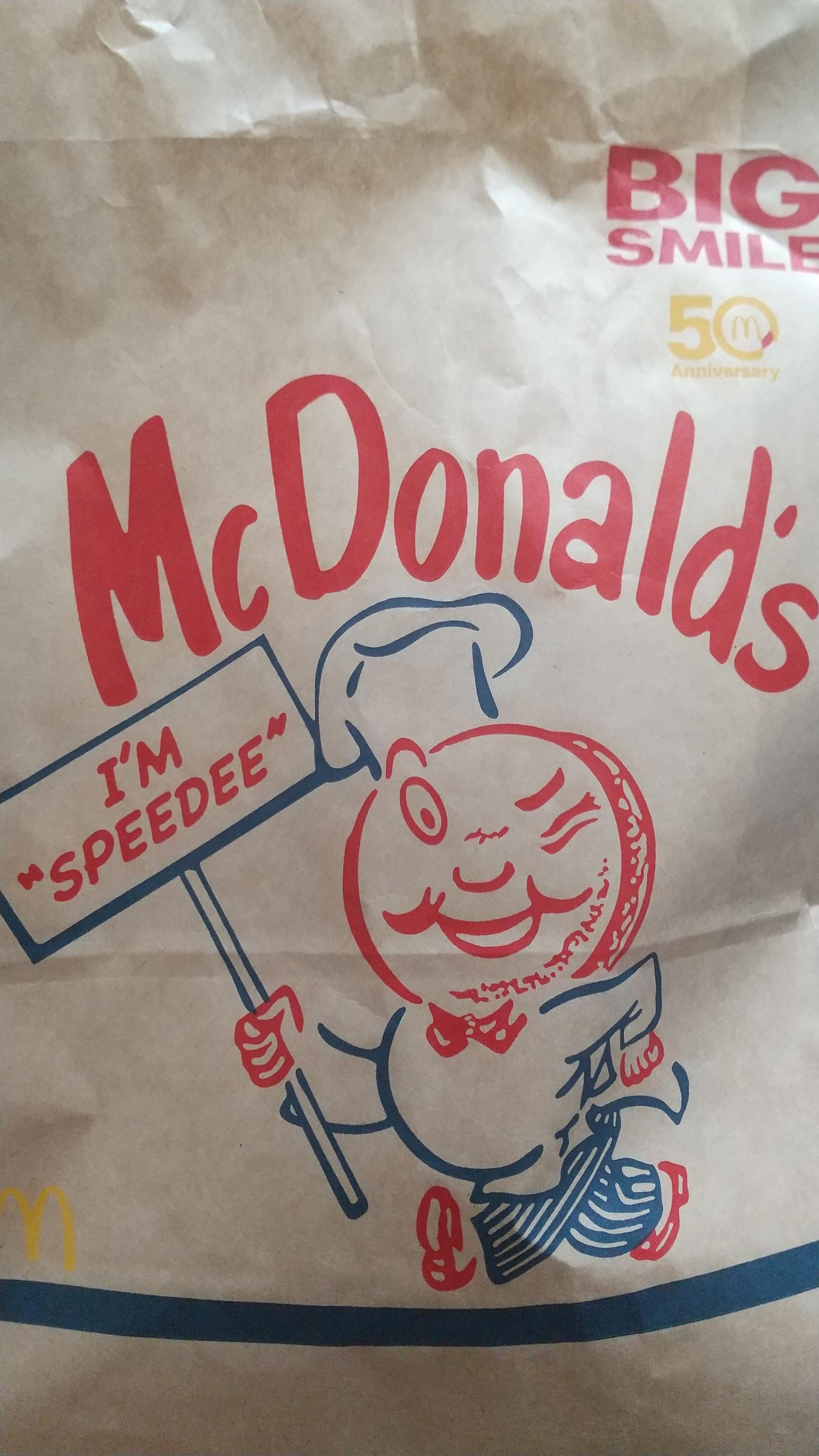 マクドナルド「50年目やし袋にキャラクタープリントするンゴ!ドナルドはみんな怖がるしせや!」
