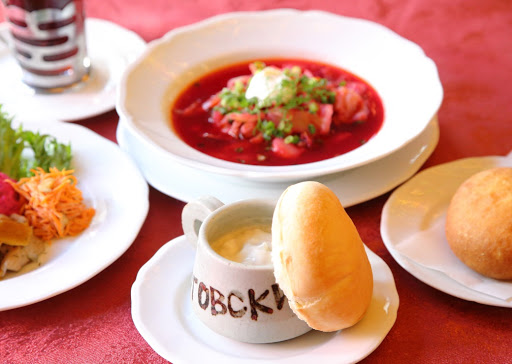 基本はボルシチとどの国でもある水餃子のご当地版みたいな肉料理とかだろ