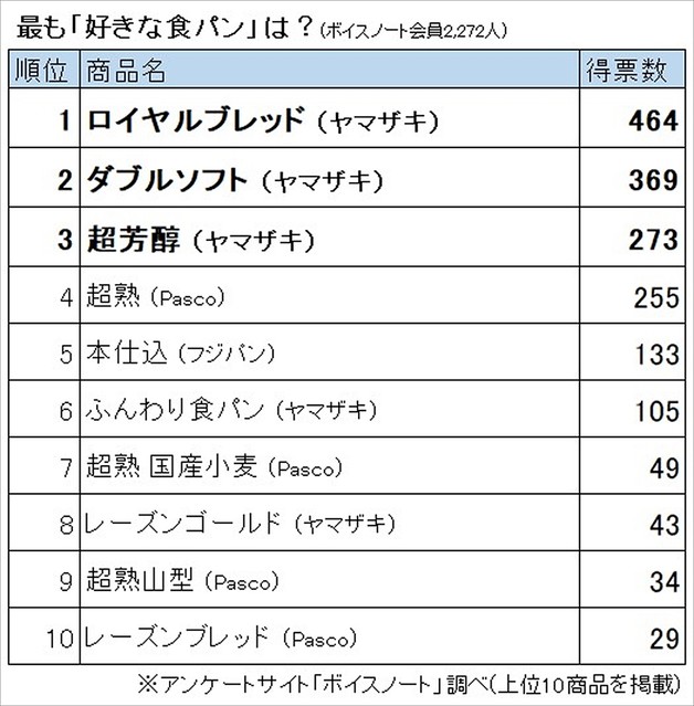 ええ?超熟が一番だと思ってたけどもロイヤルブレッド? 意外な結果だ (´・ω・`)
