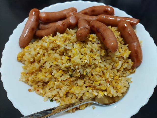 【飯テロ】ワイ特製ウインナーテャーハン出来たで~😳👍
