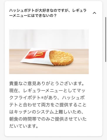 逆にハッシュポテトが嫌いだから朝マックは利用したくない