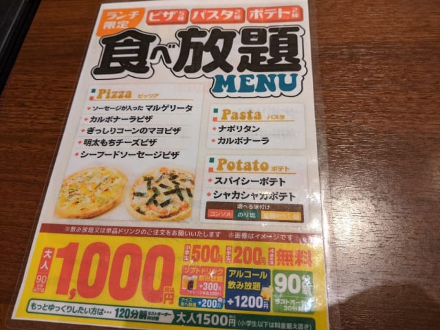 ランチ限定でピザパスタポテトだけって中々厳しいだろ