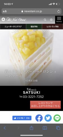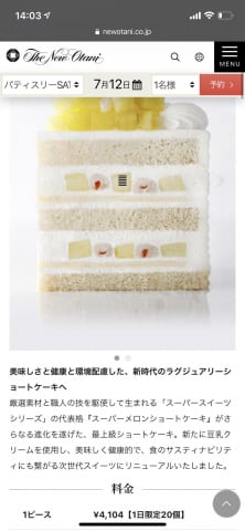 ホテルニューオータニの喫茶店でテイクアウト出来る1切れ4千円のメロンケーキがある