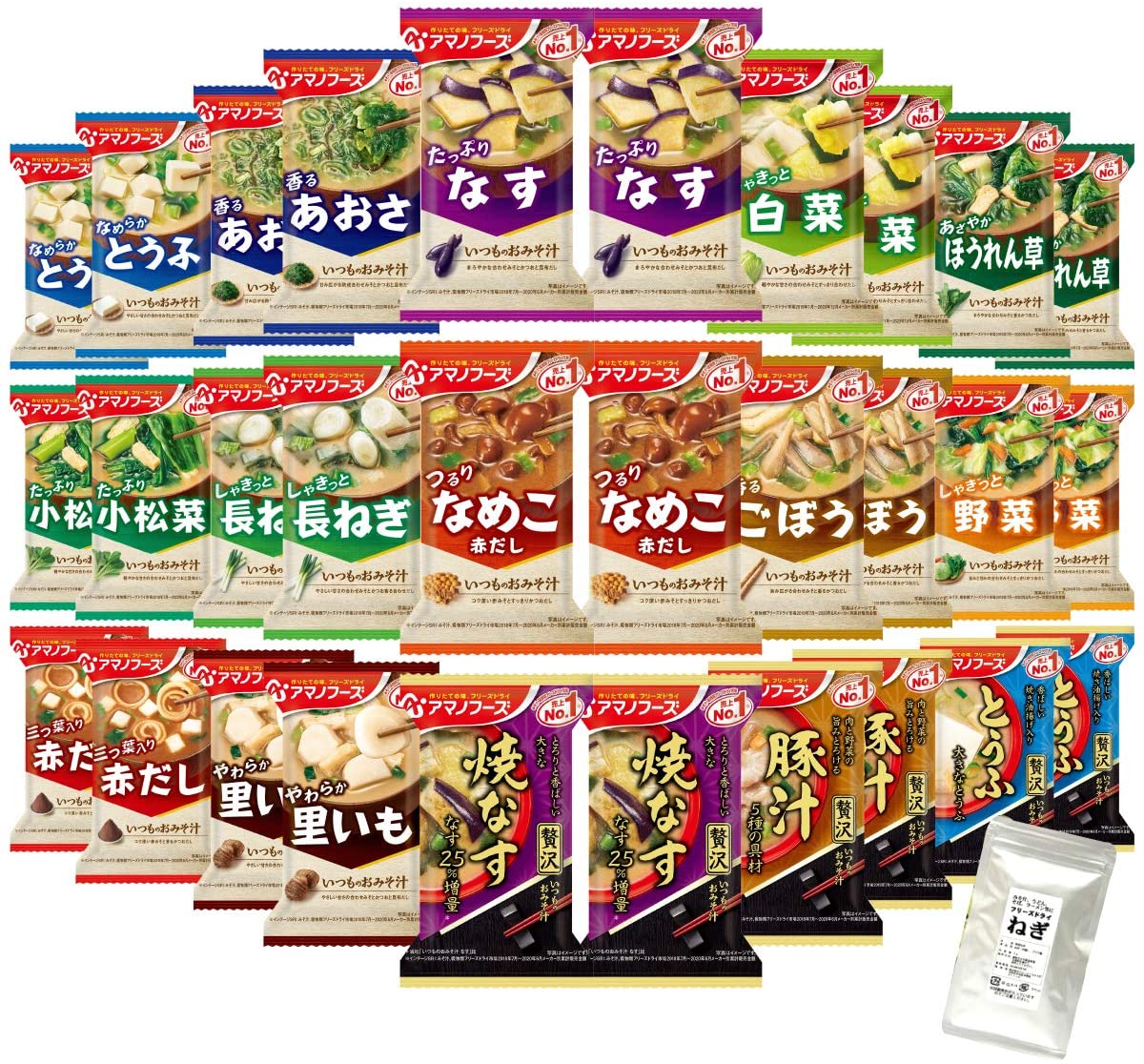 アマノフーズ フリーズドライ いつもの おみそ汁 15種類 30食 小袋ねぎ1袋 セット