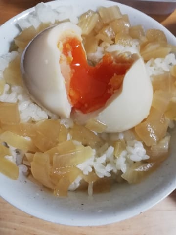 ワイの夜食「玉ねぎと煮卵かけご飯」がうますぎると話題に