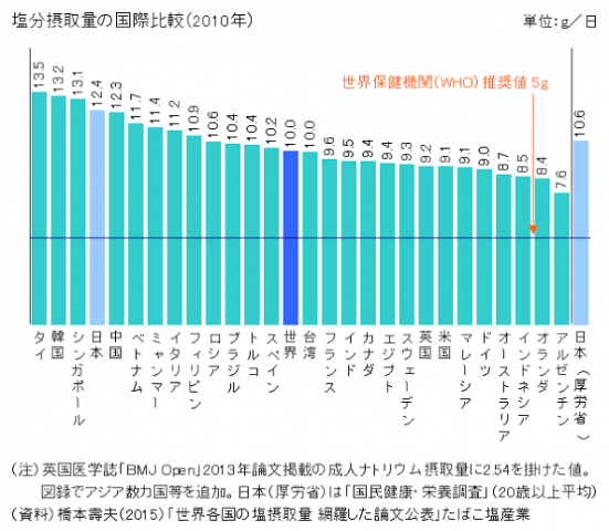 塩分とってる国のほうが健康で長生きしてんだよなぁ