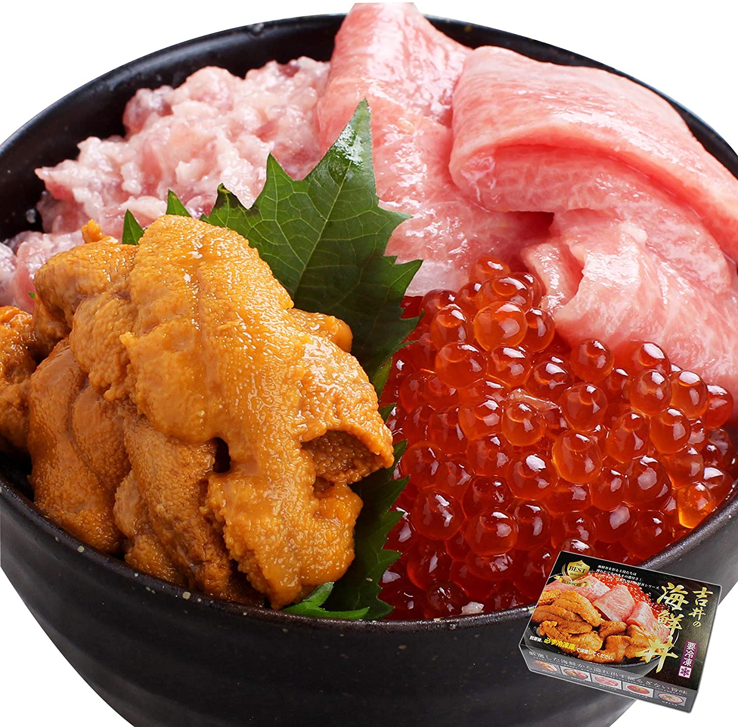 お中元 プレゼント ギフト 贈答用 人気 ランキング 海鮮 魚 まぐろ 本鮪大トロ 無添加うに 醤油漬けいくら 鮪たたき(ネギトロ)海鮮四色丼 海の幸4品セット 3~4人前 (通常商品)