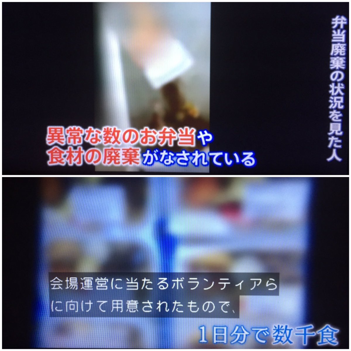 国立競技場で大会関係者向けの弁当が大量に捨てられているという。