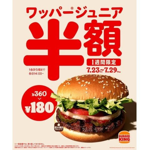 バーガーキング「ワッパージュニア2個食えるぞ」