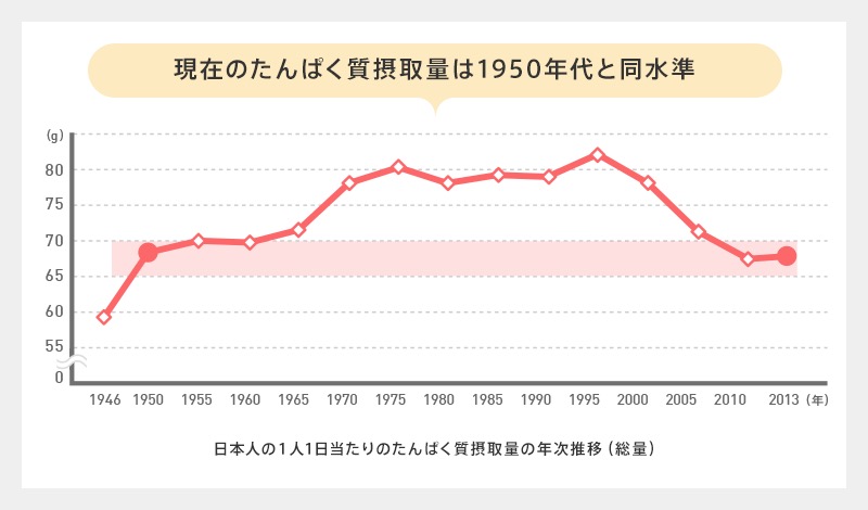 【悲報】日本人のタンパク質摂取量、戦後間もない1950年代を下回ってしまう…