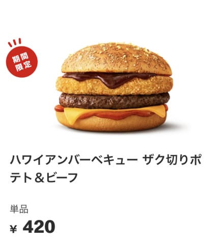 ハッシュポテト入ってるバーガーってあれいつもアイダホバーガーって名前で出されてたやつよな