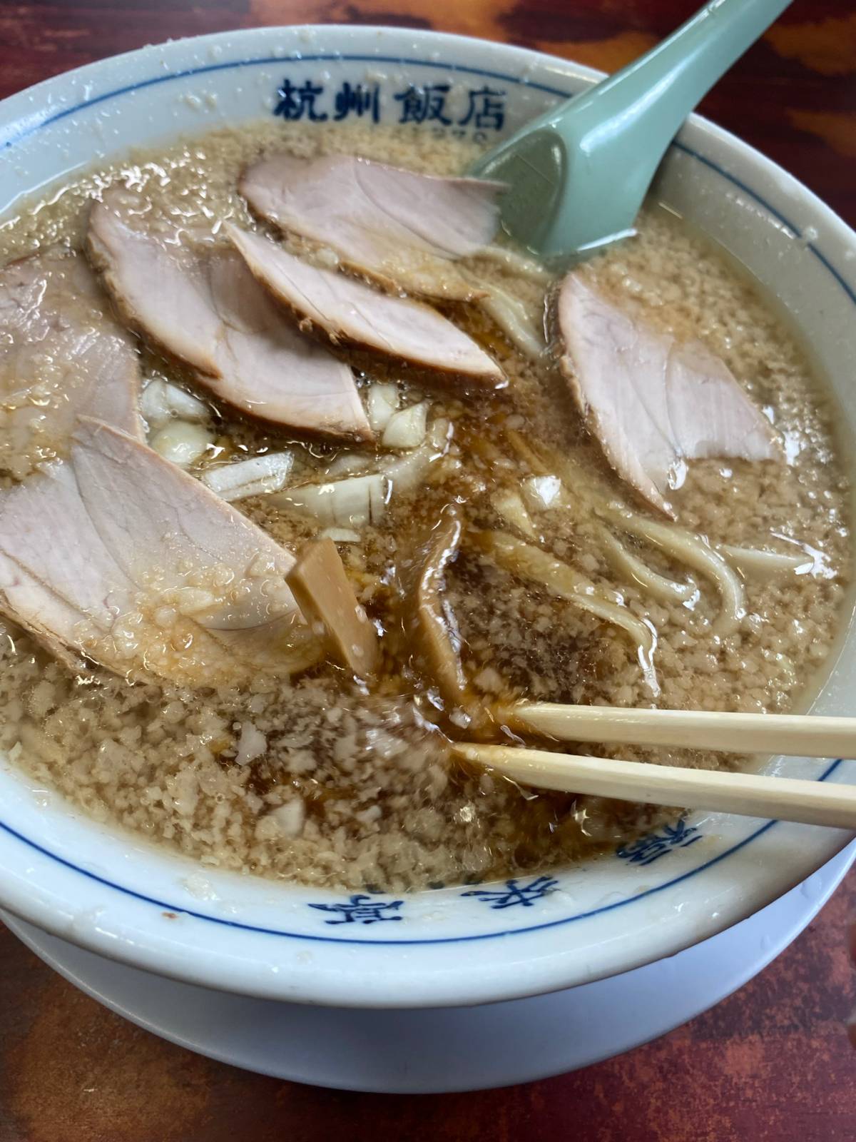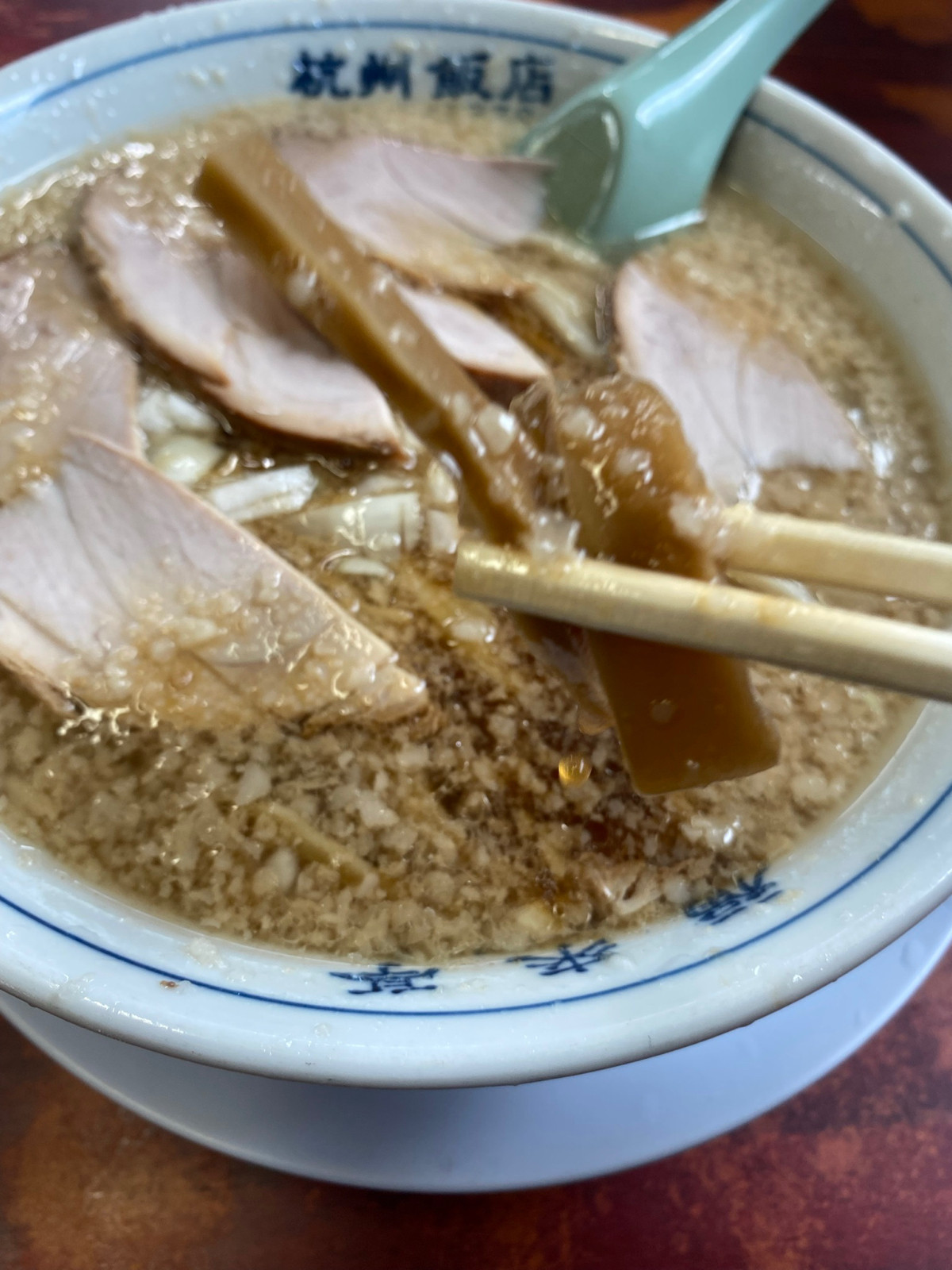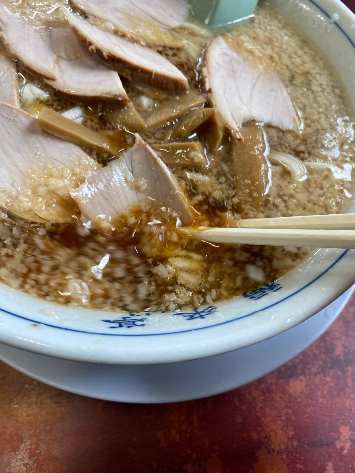 背脂ラーメンの発祥地らしい。元は出稼ぎに来た◯国人らしいが地元での評判はイマイチ評価が分かれてる。仕事でたまに行くが行くのを躊躇ってる。元祖って感じが伝わるなあ。肝心な所で手を抜いているのがアリアリと散在してる。それに追随する元弟子らの店も多く存在してる。