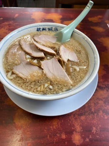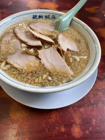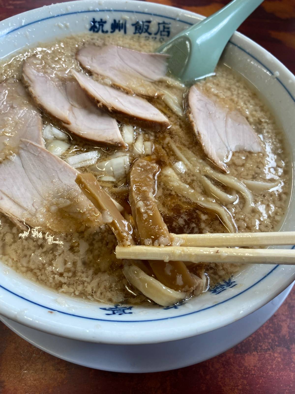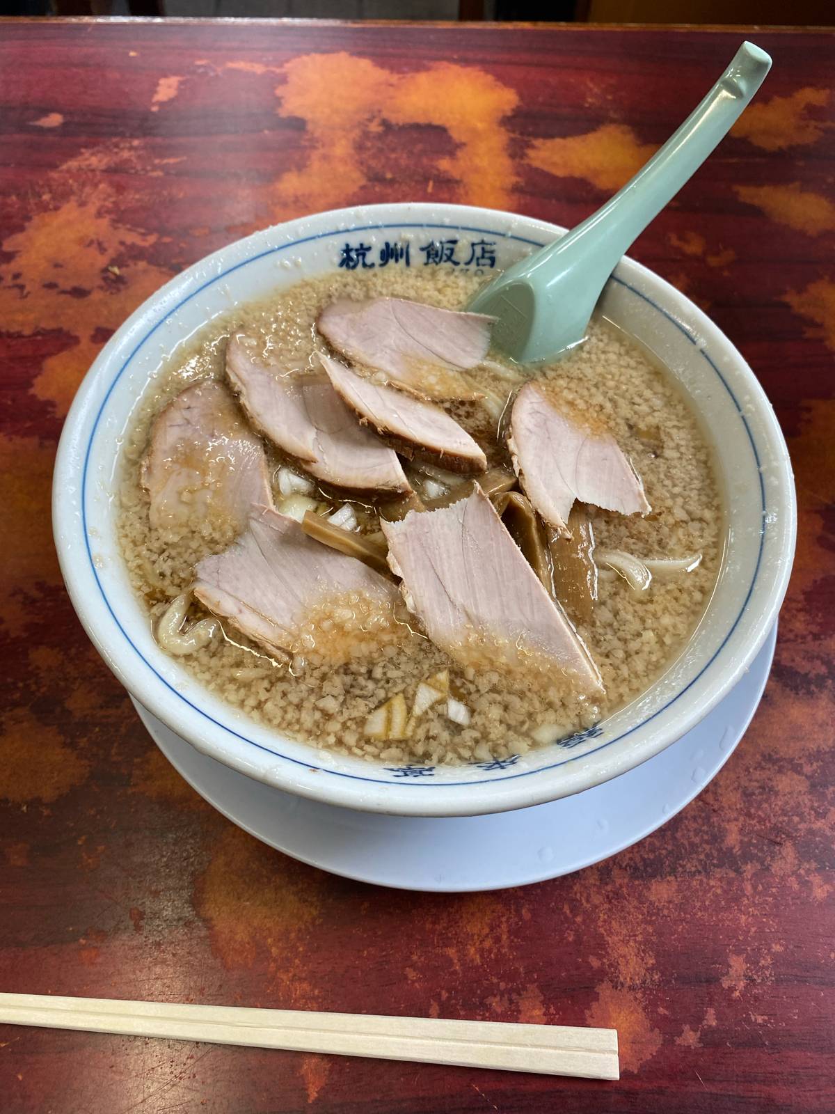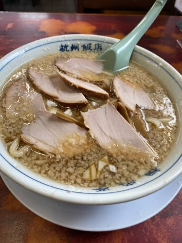 背脂ラーメンの発祥地らしい。元は出稼ぎに来た◯国人らしいが地元での評判はイマイチ評価が分かれてる。仕事でたまに行くが行くのを躊躇ってる。元祖って感じが伝わるなあ。肝心な所で手を抜いているのがアリアリと散在してる。それに追随する元弟子らの店も多く存在してる。