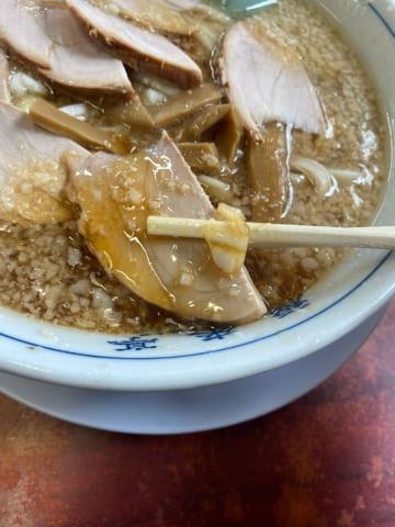 背脂チャッちゃ系でも魚介系の醤油スープだから食べやすいし