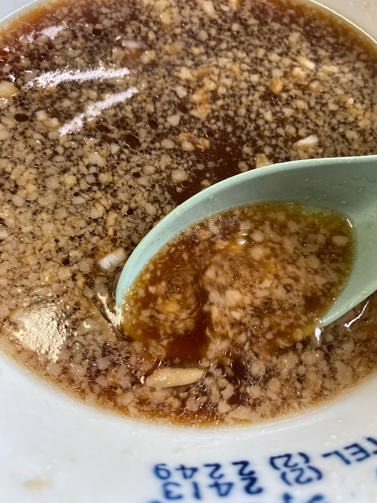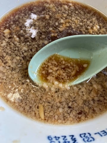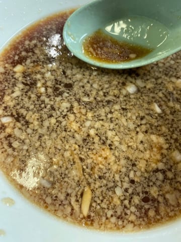 見た感じは煮干し系の出汁っぽいな、スープの味も濃いめ醤油でこちらもたぶんありきだろう