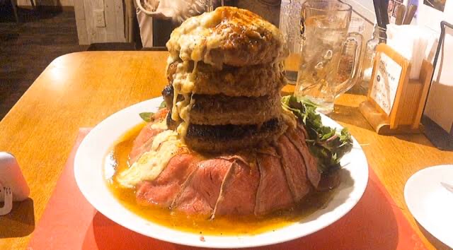 これハンバーグ2キロ、ローストビーフ600グラムある上に、ローストビーフの下にガーリックライス1キロ隠れてるから常人には完食無理だぞ