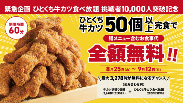 牛カツ食べ放題ランキングの5位で55個じゃん無理じゃん