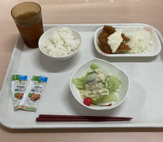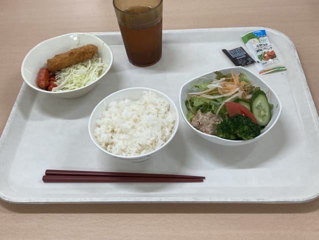 煮物、肉魚をどちらか60グラムくらい、サラダ(ワインビネガーとひとつまみの塩)あとご飯150グラム