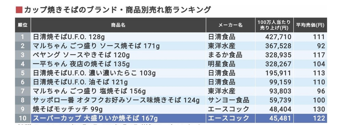 UFOが1位とか全く信用出来ないランキングだろ。麺もソースもぶっちぎりでマズイじゃん。
