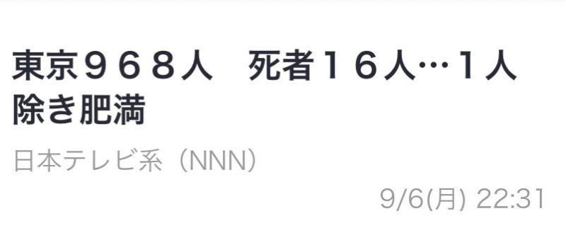 大阪で10代の男子が新型コロナで亡くなったね。基礎疾患あり・ワクチン未接種だったから、肥満の人は急激に痩せるのは不可能だからワクチン接種した方がいいね。