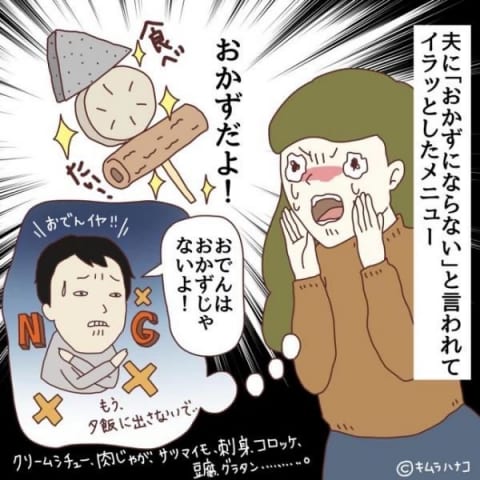 仕事で疲れて帰ってきたらご飯とおでんだとええ…ってなるし、かと言って料理作ってやってるのに文句言うもの腹立つ