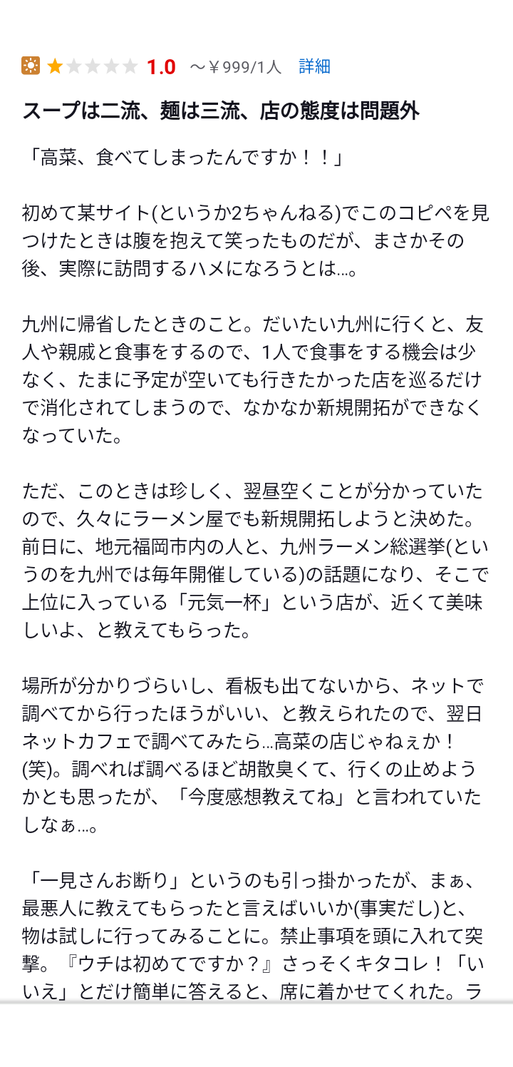 初来店で高菜食って徹底的に怒鳴られ詰られて追い出された飲食店の皮を被ったゴミだったんで