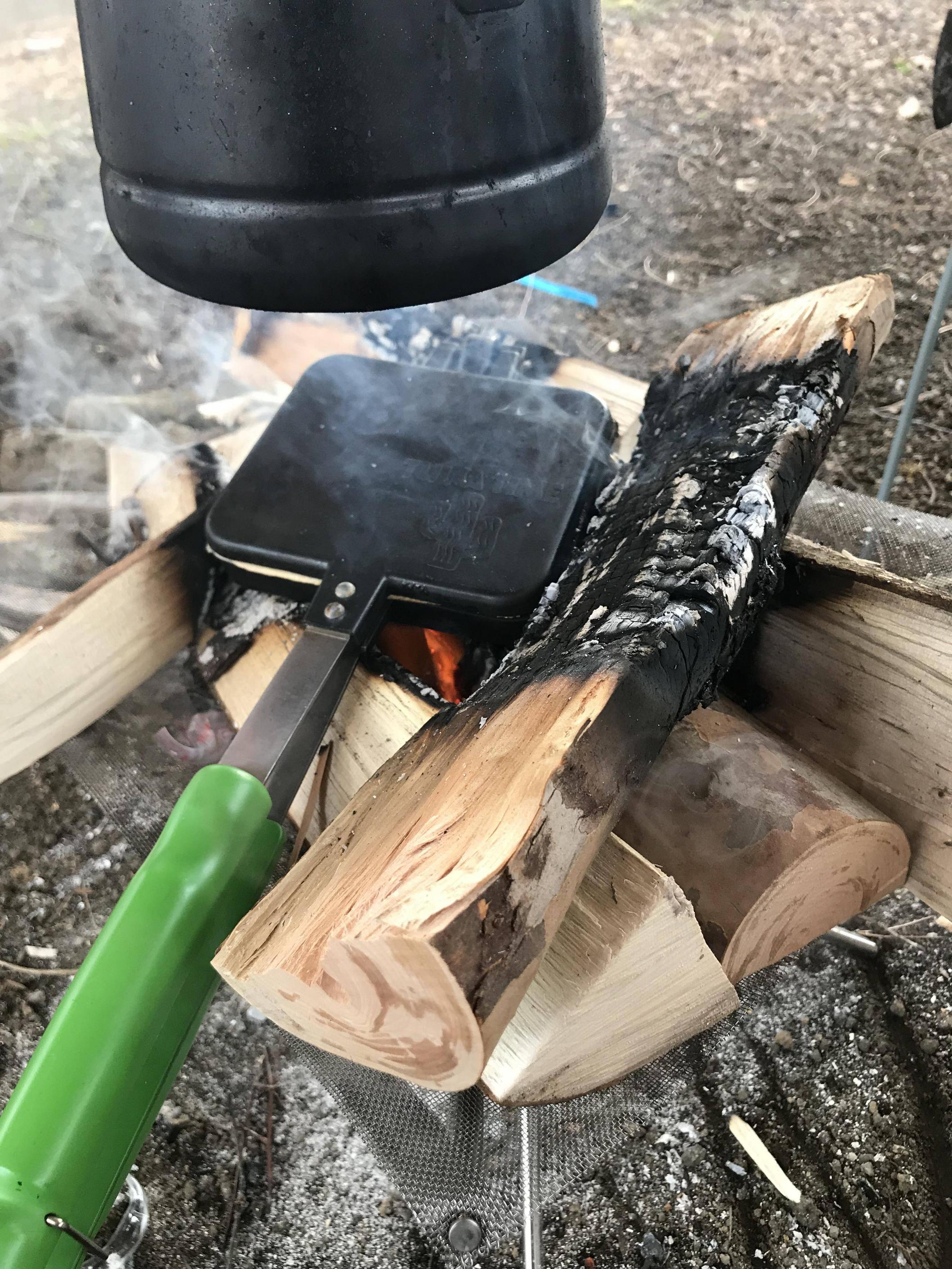 キャンプで面白そうだと思って買ったらリロ氏って奴知り こんな使い方もあるのかーと思ってから便利なフライパン変わりにしてる