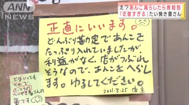 正直すぎると評判になった「たい焼き店」にお客さんが殺到。きっかけは一枚の張り紙でした。