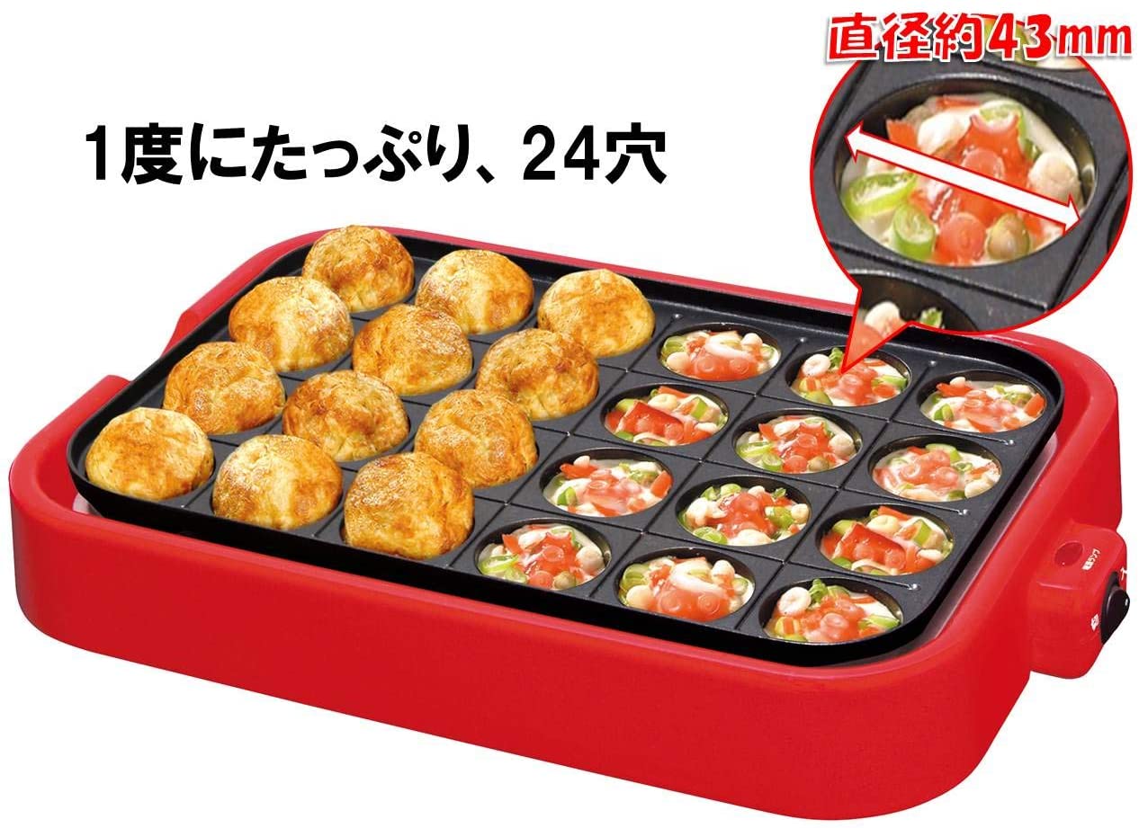 [山善] たこ焼き器 24穴 着脱プレート式 レッド YOA-240® [メーカー保証1年]