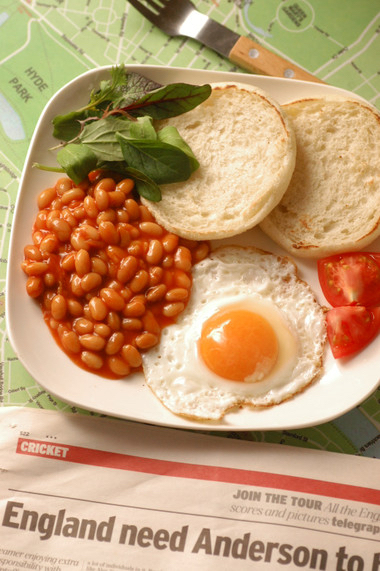イギリスの朝飯は、これと黒マッシュルーム、トマト炒め、カリカリベーコン、血入りソーセージ。なおイギリス人も毎日は食べない模様。