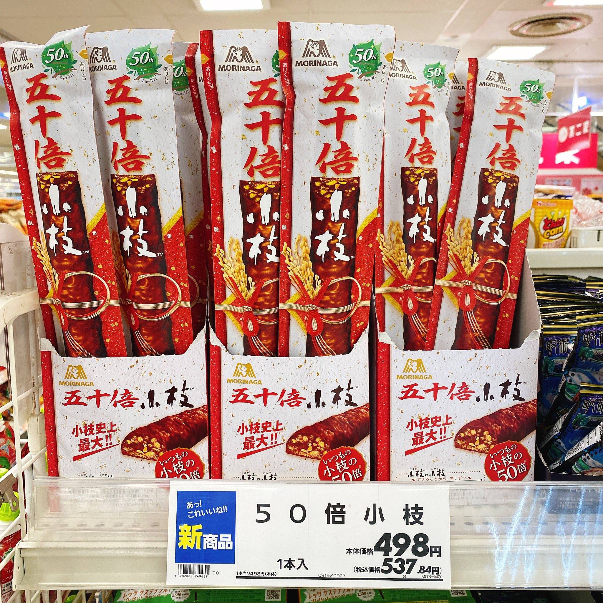 森永製菓が「小枝」の発売50周年を記念して、「50倍小枝」を9月21日に発売します(希望小売価格540円)※500円(税抜)。パッケージの中身が1本まるまる“でかい小枝”!  文字通り小枝を50倍にしたチョコ菓子。重量は約72グラムと一般的なチョコバーより重く、食べごたえがありそうです。正確な寸法は公表されていませんが、公式の比較画像を見る限り、長さは通常の5~6倍、幅は3~4倍あると推測されます。  パッケージは50周年を祝うご祝儀風のデザイン。在庫がなくなり次第、販売終了となります。 https://news.yahoo.co.jp/articles/92058d2e0562ccd01954b02c8be6f8f9e5eccafa 丸太みたいな50倍小枝