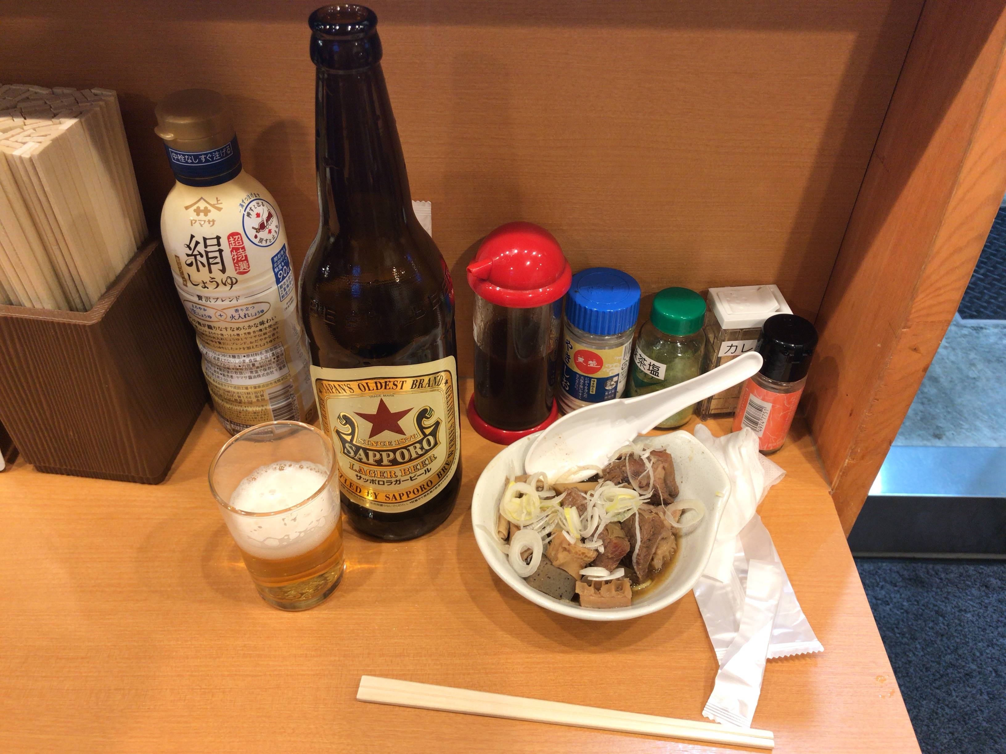 立ち飲み屋のカウンターで瓶ビール飲むと雰囲気に浸れるからええぞ