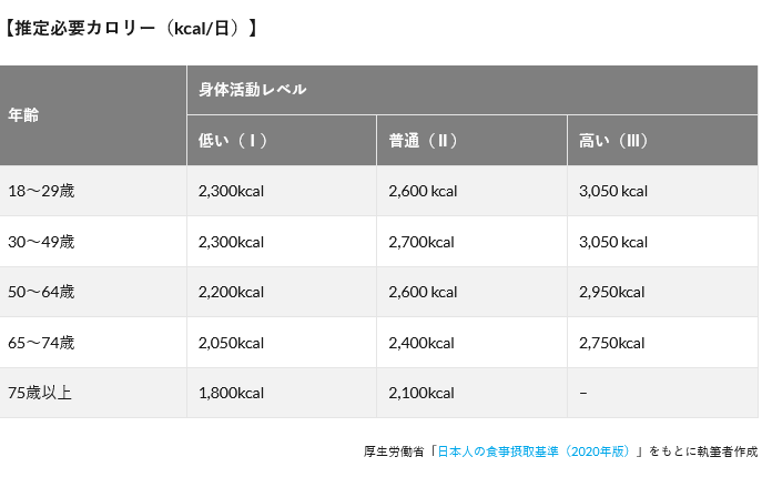 運動してない人ですら最低1800は取らんといけないんじゃなかったっけ