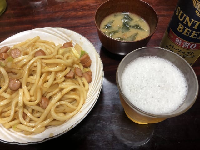 焼うどんの味付けはおたふくソースとコンソメぶち込んだだけでしゆ
