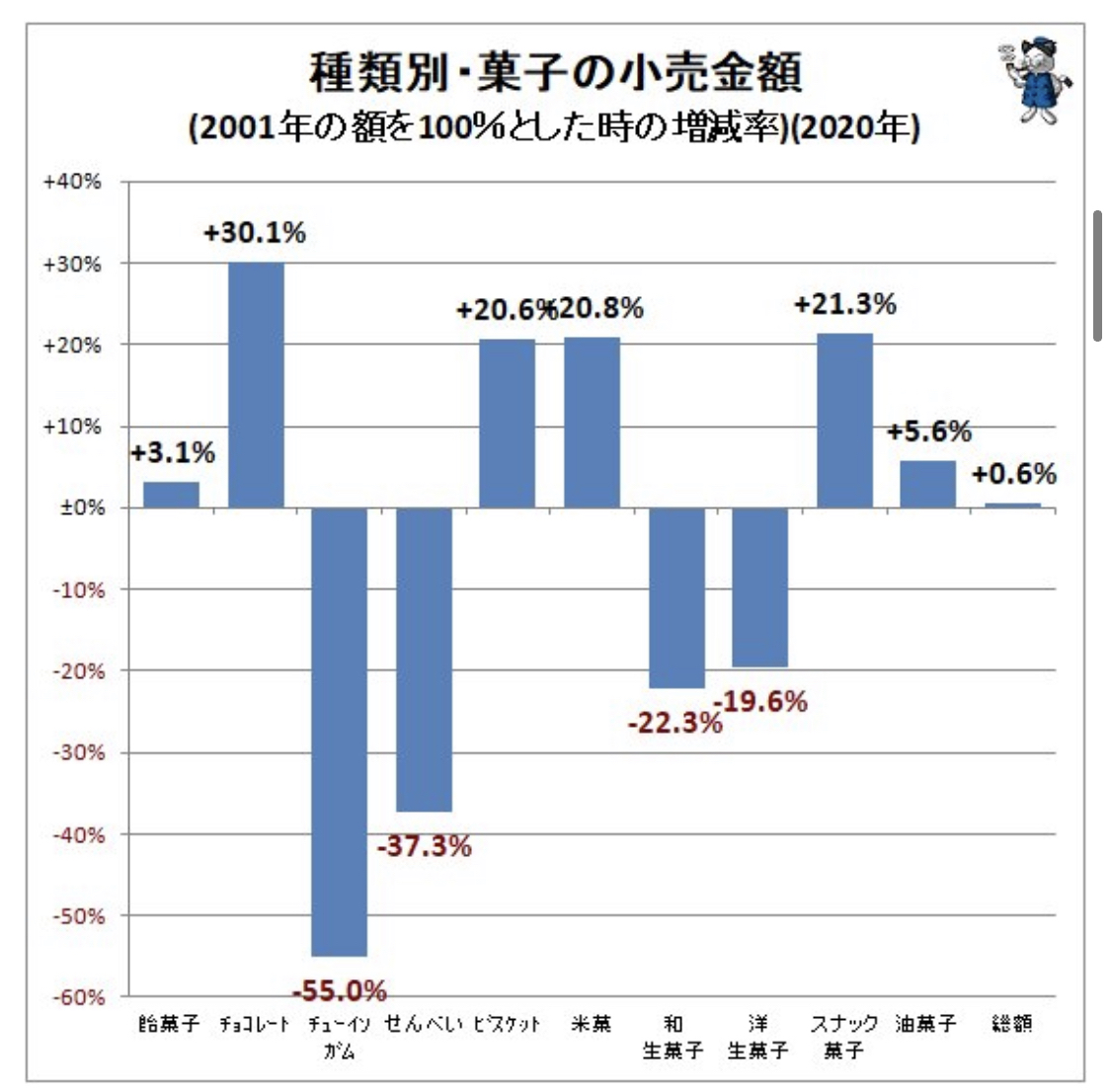 あれ1袋で100円しないんだから和菓子・洋菓子が太刀打ちできるわけがない。