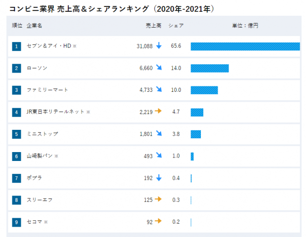 ローソンファミマを足しても、セブンの半分もないけどな