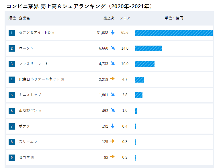 いかにも現在ファミマが2位ですみたいな物言いしておきながら実際には3位だからな