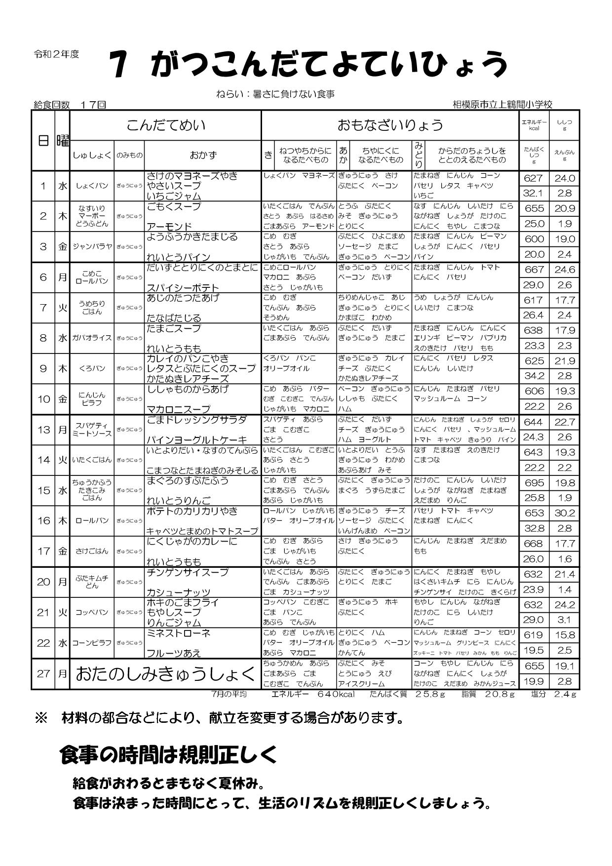 【画像】給食の献立表拾ってきたから楽しみな日を教えて