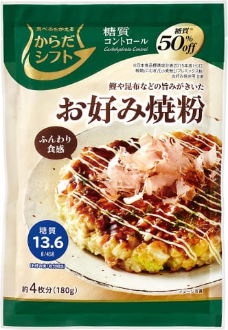 日清の山芋入りの奴50g+大豆粉50gで、ダシの素小さじいれて、後はキャベツタップリで作るお好み焼きはいいぞ。