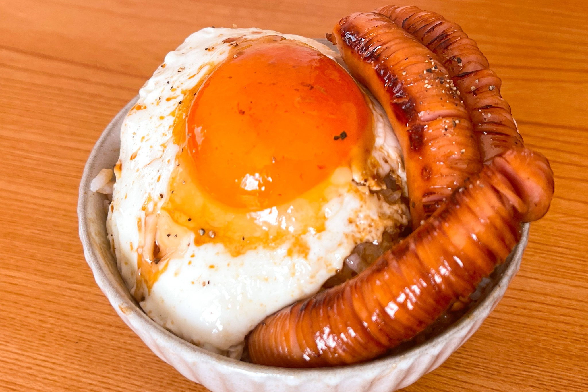 目玉焼きより卵2個崩してタマネギ突っ込んで炒めて冷凍唐揚げとかウインナーとか突っ込んで丼にした方がいいような