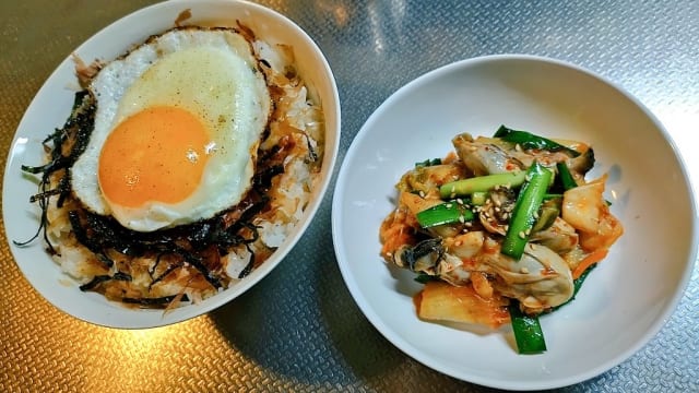 よくかき混ぜて余分な水分を飛ばした上に目玉焼き乗っけて食ってる