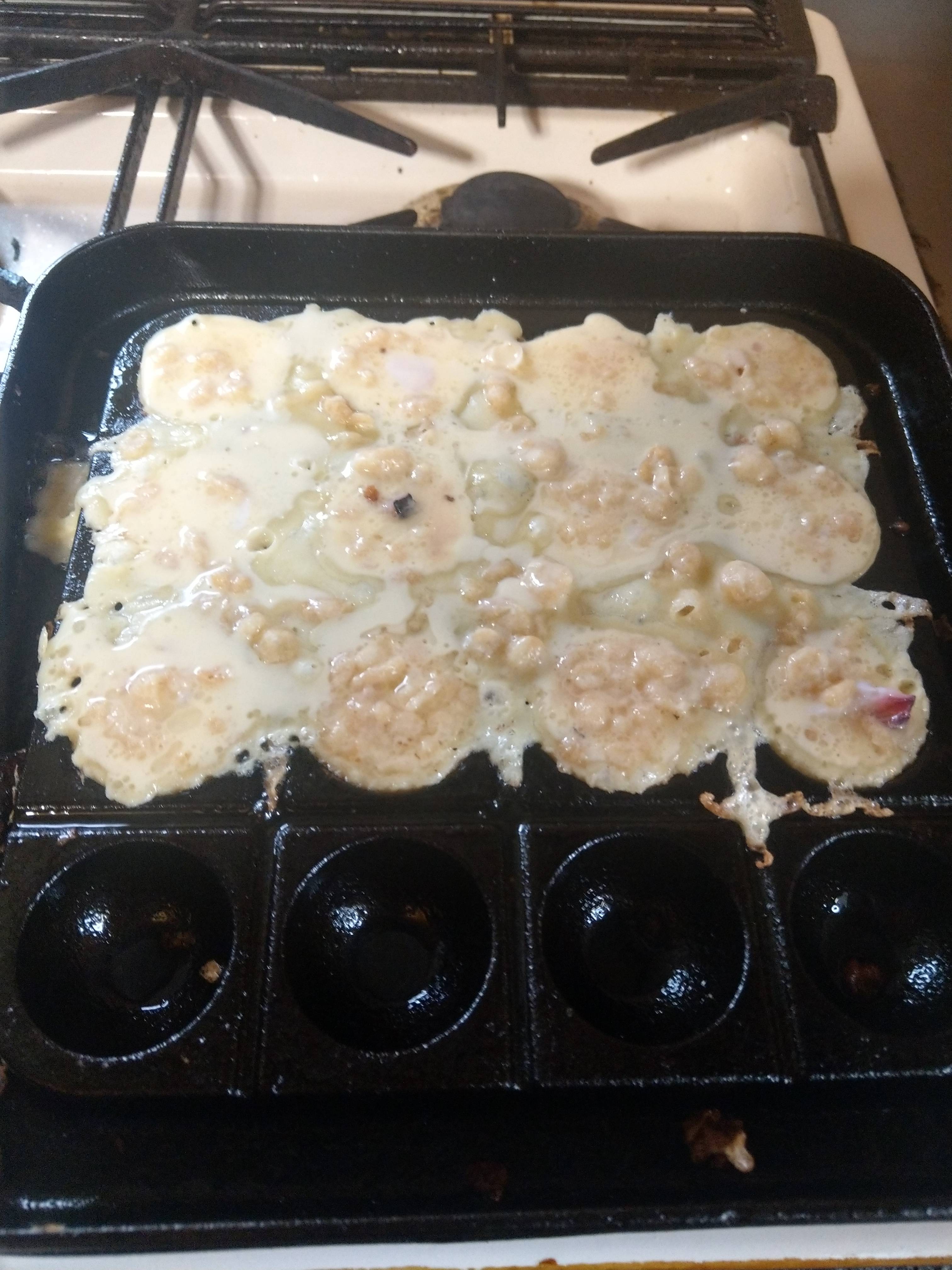 たこ焼き機の穴ぼこのとこにだけ入れても丸くならんで