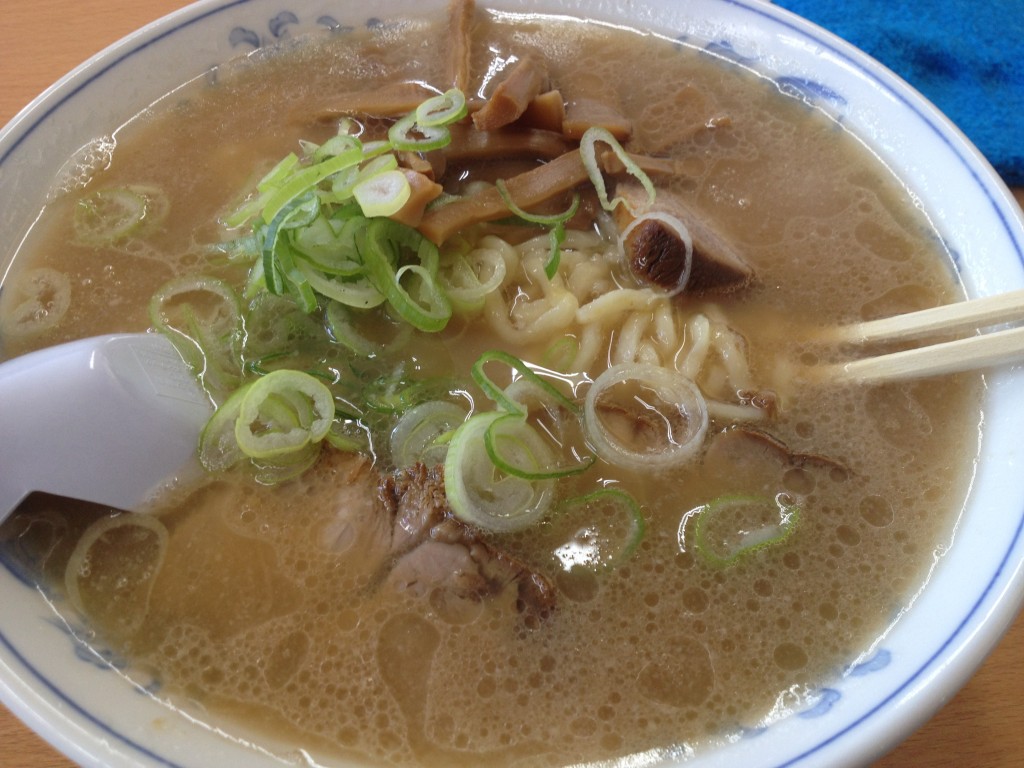 あちあちの中太ちじれ麺の豚骨醤油がワイの地元の味よ
