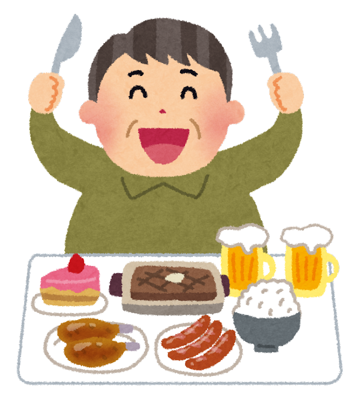 三食結構満腹まで食べて夜にはアルコールも摂取。