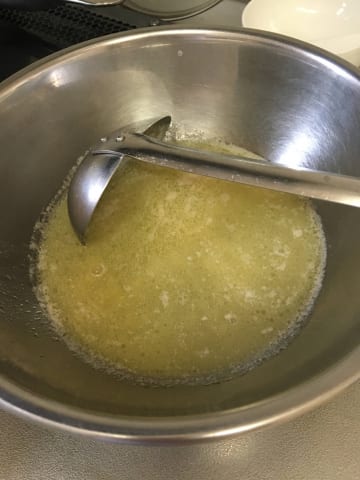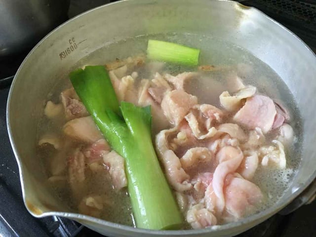 煮てゆで汁ごと冷蔵して白く固まった油をはずすとふわふわになったのが手に入る