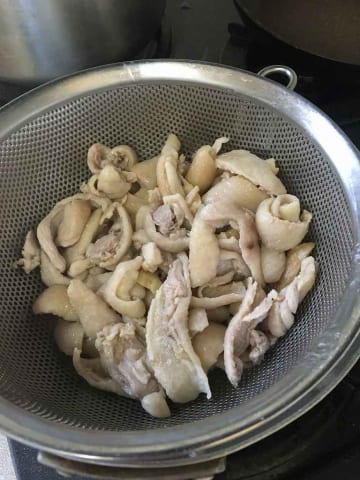 茹でて油とコラーゲン落とした後にバルサミコ酢か黒酢で風味付け